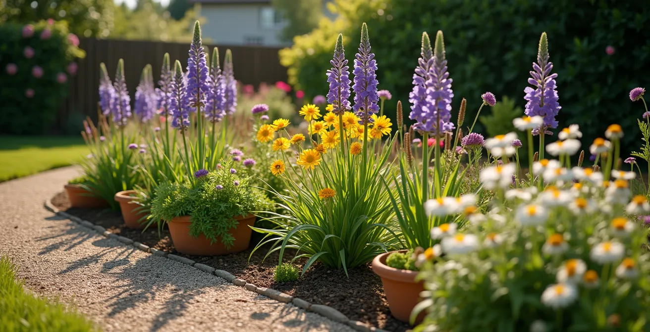 Devant ce filtre vaporeux, on place le « milieu plein », composé de plantes de taille moyenne au port plus dense (échinacées, sauges, phlox), qui constituent le cœur de la floraison. Enfin, la bordure est habillée de plantes basses ou tapissantes qui adoucissent les contours du massif et créent un lien avec la pelouse ou l’allée. Le tableau suivant synthétise cette approche multi-niveaux.
