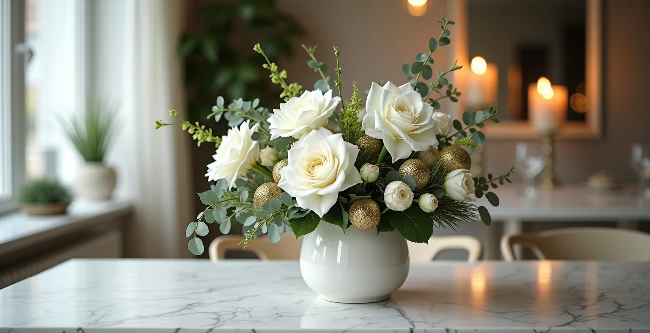 Mais si la clé d’un Noël contemporain ne résidait pas dans une simple substitution de couleur, mais dans une approche de styliste ? Et si l’on considérait l’absence du rouge et du vert non comme un manque, mais comme une toile de fond pour un jeu subtil de textures, de formes et de lumière ? L’élégance ne naît pas de l’abondance, mais de la maîtrise des détails : le velouté d’un pétale de rose blanche contre la structure graphique d’une branche, la vitalité d’une fleur fraîche rehaussée par l’éclat mat d’un élément doré, la façon dont un bouquet respire dans la chaleur d’un salon.