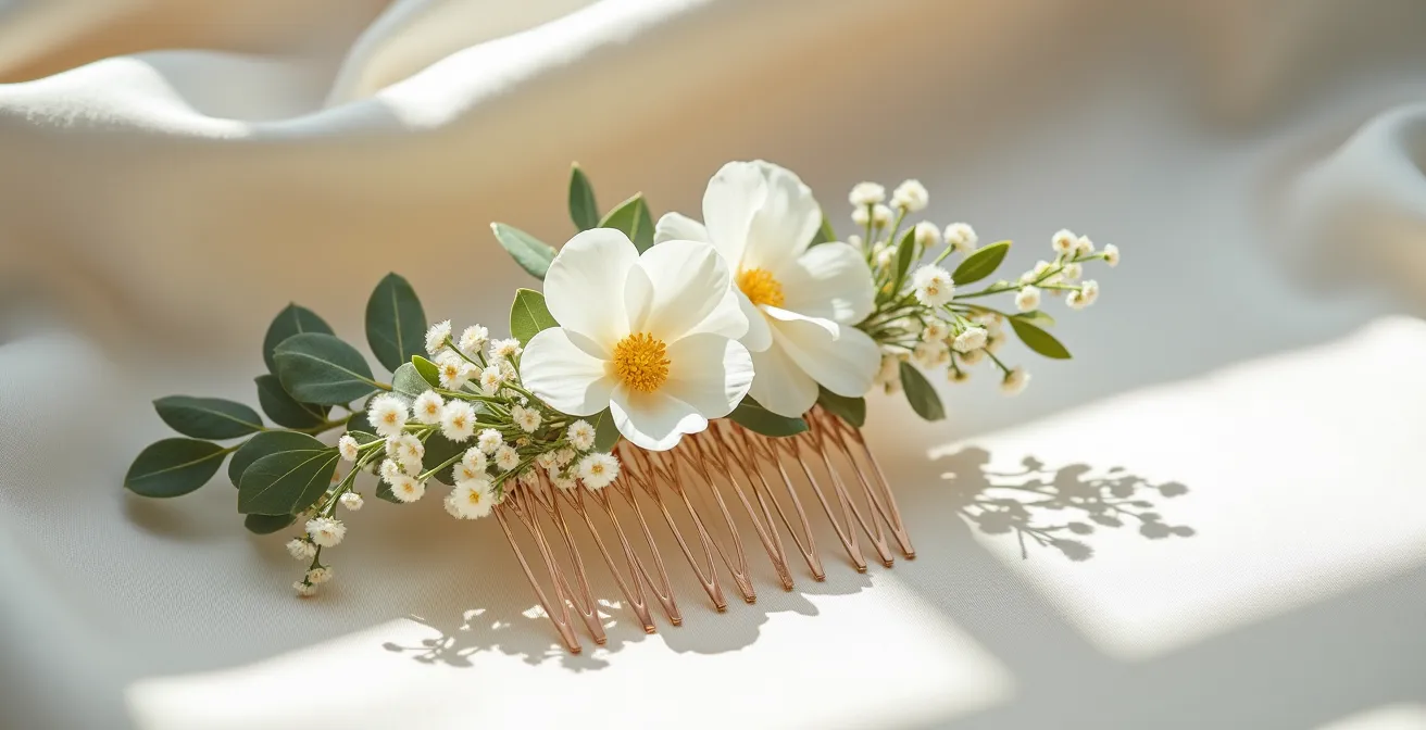 Le secret d’un peigne floral qui ne vous abandonne pas sur la piste de danse ne réside pas dans la chance, mais dans une approche d’ingénierie. Oubliez le simple bricolage : la durabilité naît de la fusion entre la science des matériaux floraux et les techniques de structure capillaire. En choisissant le bon support, la méthode d’assemblage adéquate et des fleurs traitées pour résister, vous ne créez pas un accessoire éphémère, mais un véritable bijou de coiffure conçu pour durer.