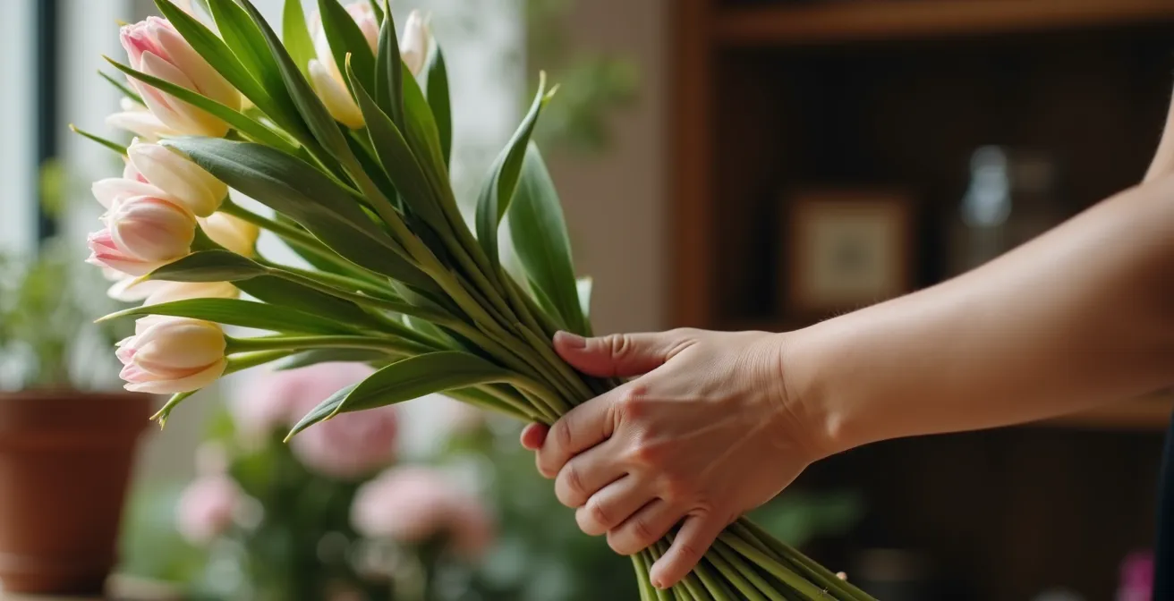 | Élastique plat | Tiges herbacées (tulipes, gerberas) | Répartit la pression | Retirer avant mise en vase |