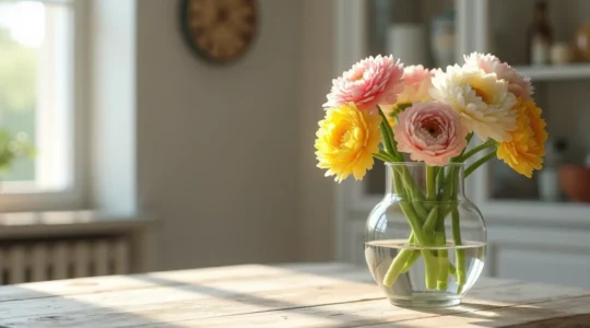Les renoncules détestent la chaleur directe. Éloignez-les de toute source de chauffage et privilégiez une pièce fraîche, idéalement entre 15 et 18°C. Dans ces conditions optimales, elles tiennent facilement dix jours.