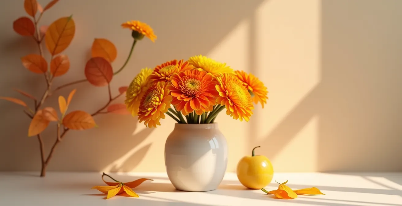 La plupart des conseils s’arrêtent là : « offrez des soucis ». Cette approche, bien que correcte, manque l’essentiel. Elle ignore le potentiel immense de cette fleur à devenir le cœur d’une célébration sur-mesure. Et si la véritable clé n’était pas simplement de donner la bonne fleur, mais de l’intégrer dans un univers symbolique qui raconte une histoire, celle de la personne célébrée ? Si le bouquet devenait une œuvre d’art éphémère, un tableau floral reflétant l’âge, la personnalité et l’ambiance de la fête ? C’est tout l’art de la composition symbolique.